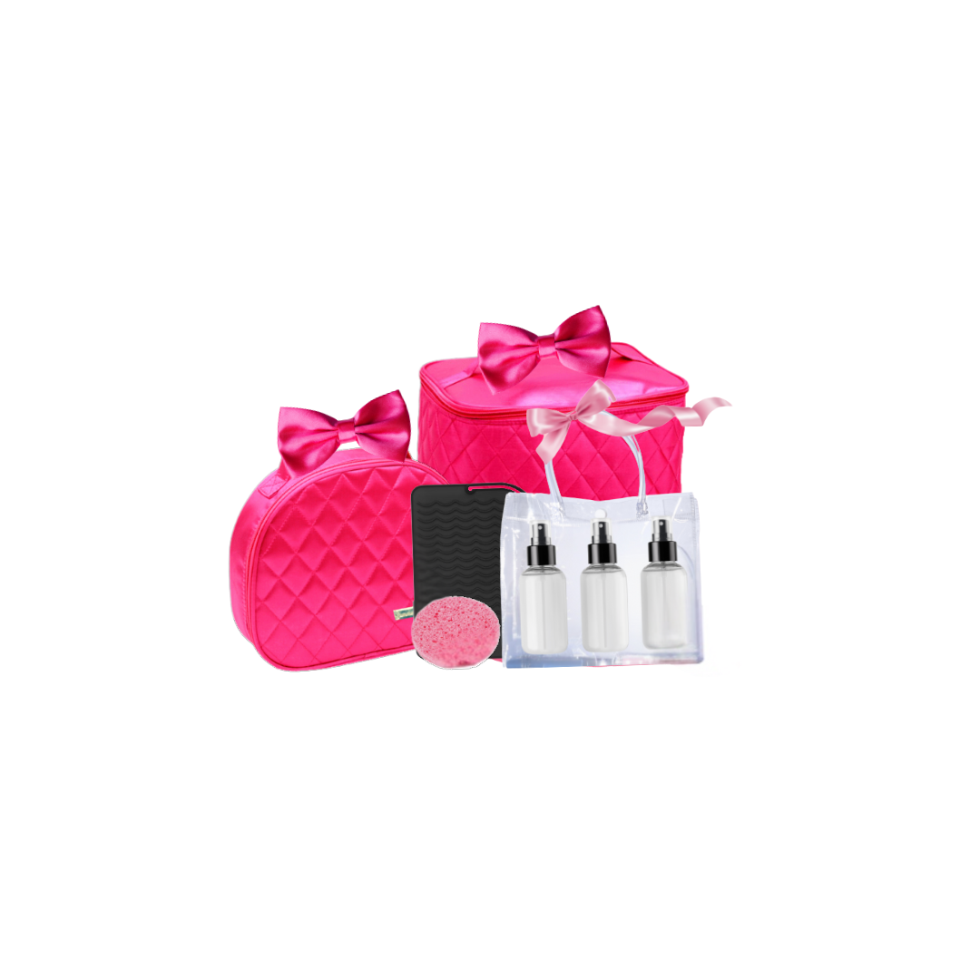 A thoughtful addition to simplify your hair care routine: a heat-resistant silicone mat to protect your countertops while using your electric styling tools, TSA-approved travel bottles for hassle-free packing, and a handy sponge for quick spot cleaning your Hairbag and Hairbox. These little touches keep your space organized, fresh, and ready for anything.